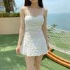 2024 Novo Ins Style Sexy Pequeno Peito Backless Bow Belly-Covering Emagrecendo Uma Peça Conservador Hot Spring Swimsuit para Mulheres