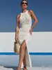 Vestido Colete Novo Estilo Europeu e Americano Transfronteiriço Sexy Tricotado Vazado Roupa de Proteção Solar para Praia Biquíni Saída de Praia para Mulheres
