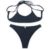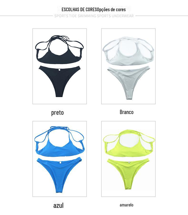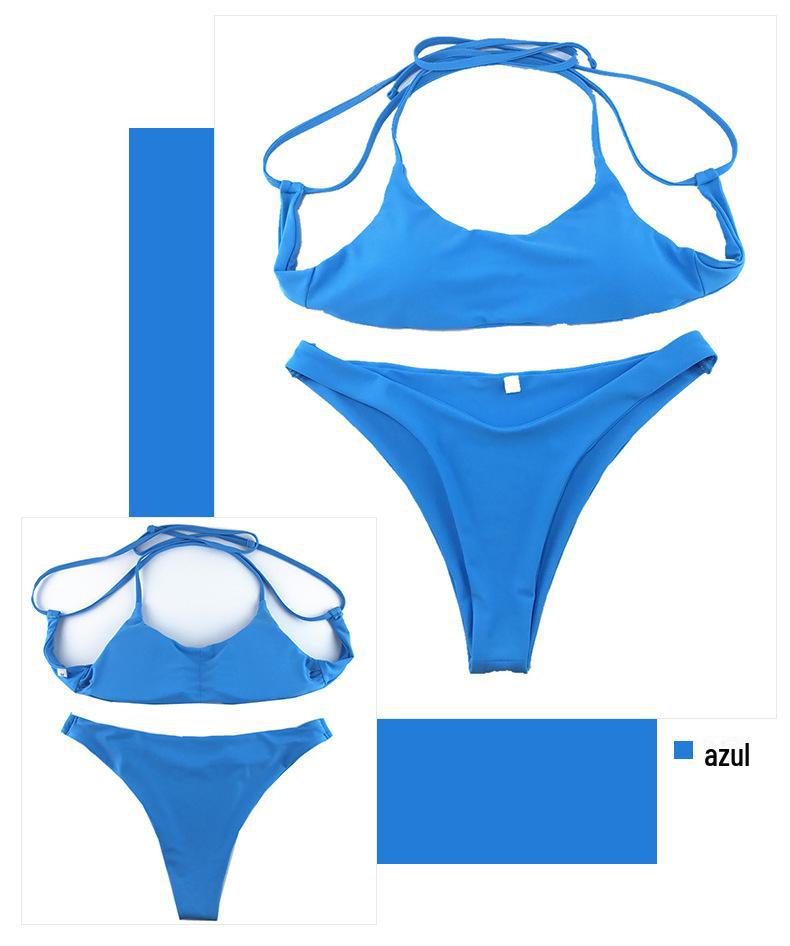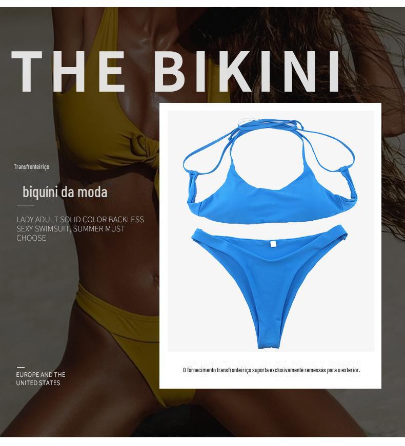 Spot atacado senhoras adulto cor sólida sem costas cinta sexy maiô cross-border novo europeu e americano split bikini