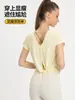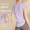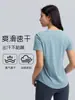 Top de ioga feminino de manga curta, fino e solto, para verão, respirável, fitness, esportivo, corrida, secagem rápida, DS075