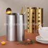 Porta-talheres de aço inoxidável estilo coreano Oval Porta-canetas Armazenamento Dourado Porta-talheres de aço inoxidável Suporte para tubos de sucção Suporte para facas e garfos Tubo de sucção