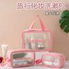 Saco de lavagem de maquiagem de grande capacidade de saco de banho de PVC translúcido PU transparente de três peças conjunto fosco saco de armazenamento portátil