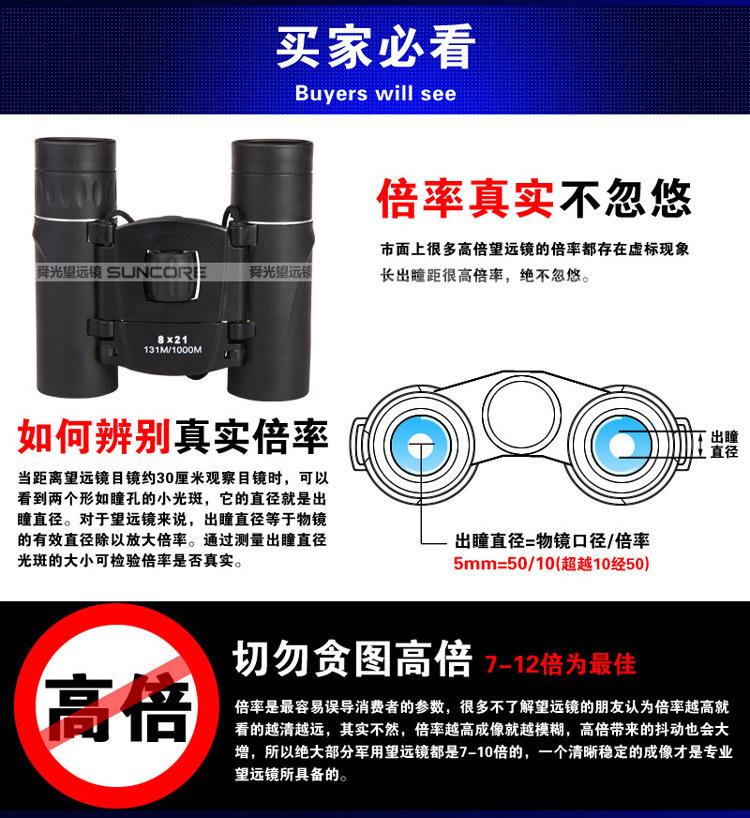 Binóculos Pequenos Shunguang 8X21 Binóculos Telescópio Reto Alta Potência Alta Definição Filme Verde para Assistir a Concertos