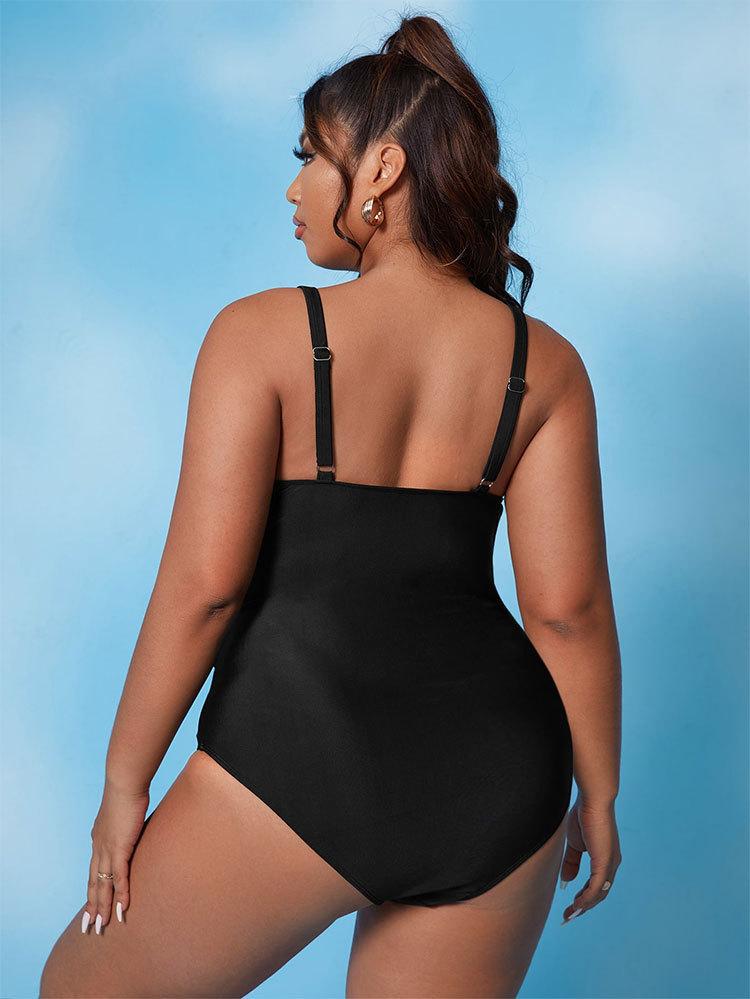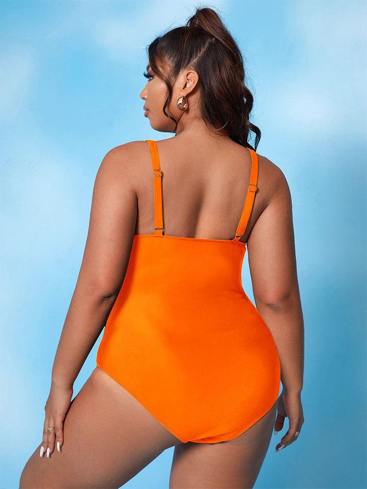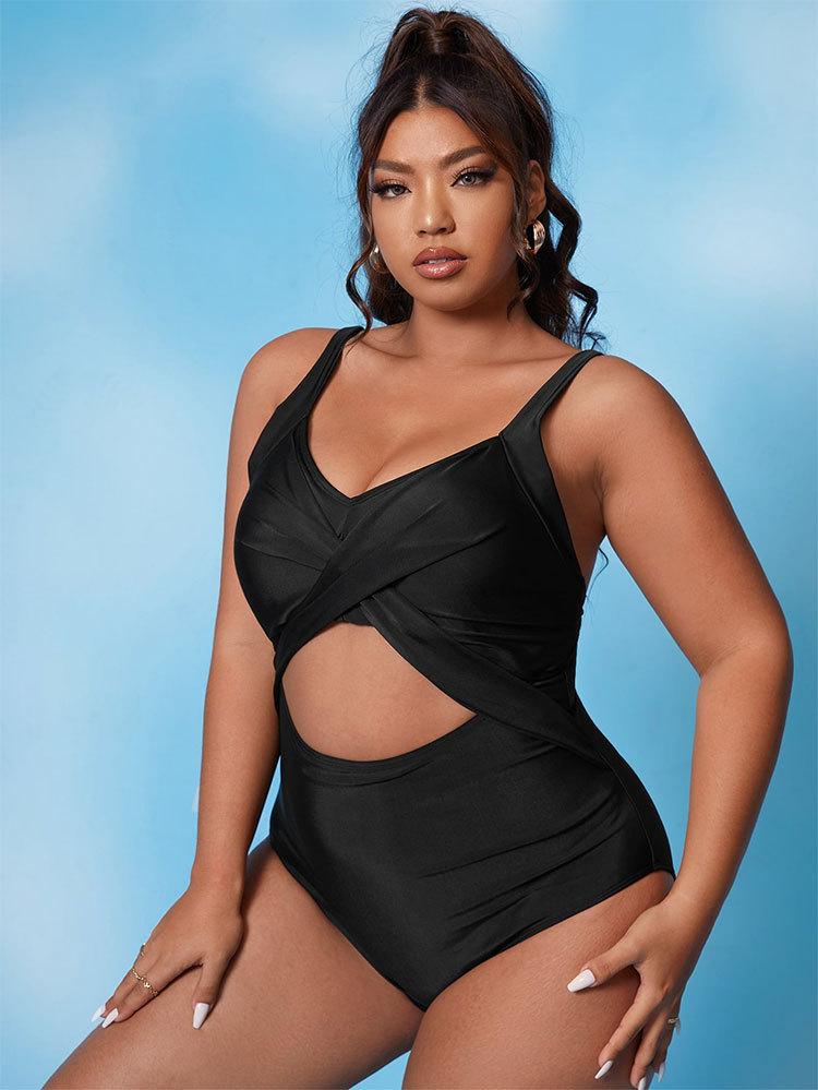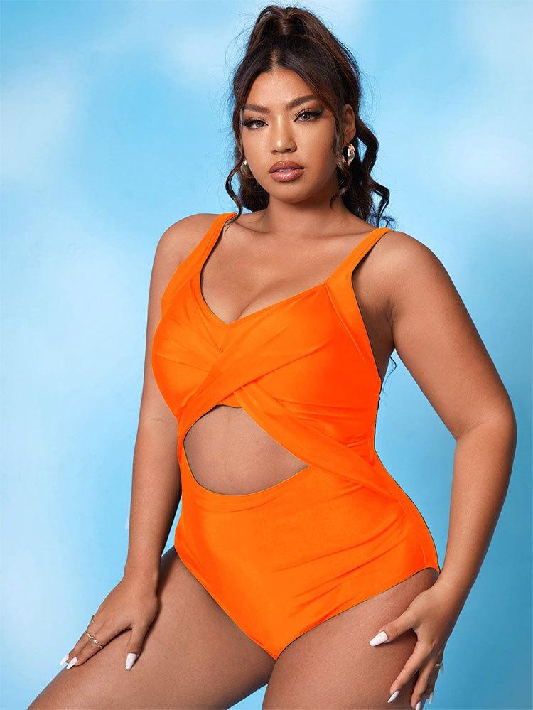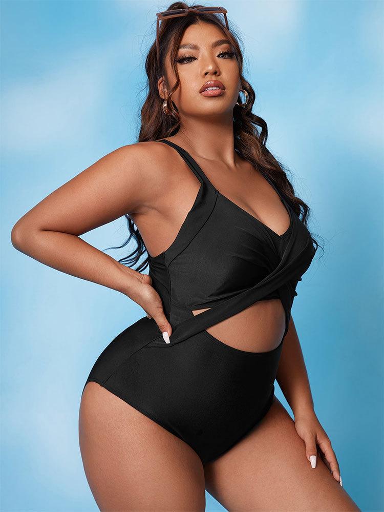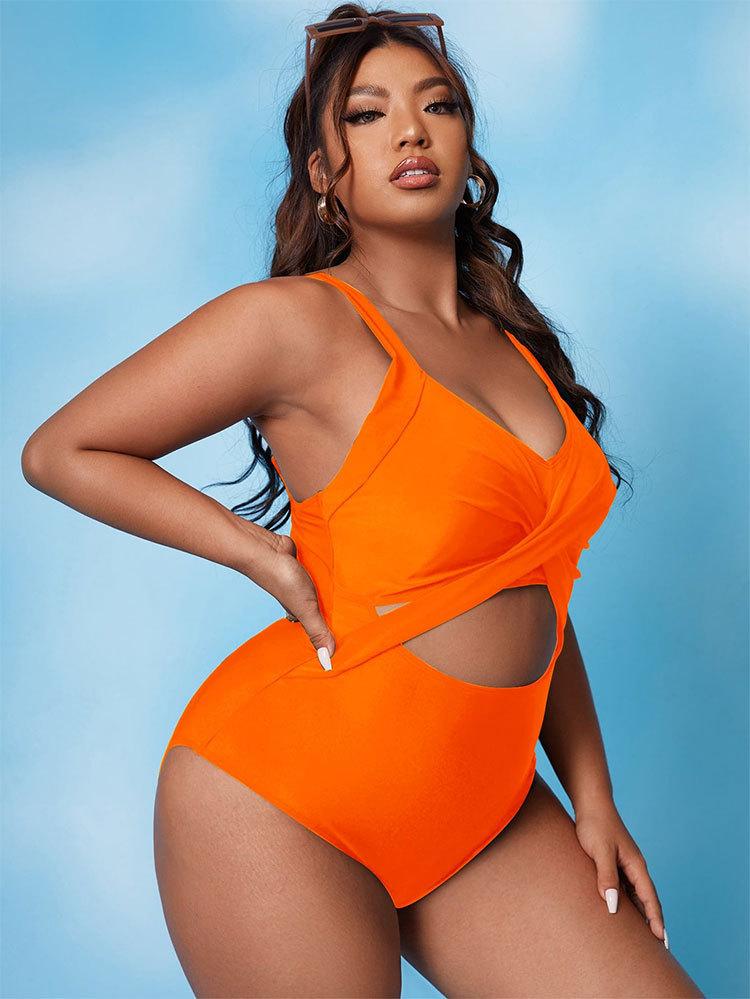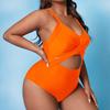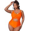 Biquíni 2024 Novo Maiô Europeu e Americano Feminino Exportação Cor Pura Vazado Peça Única Tamanho Grande Moda Gradiente Maiô Atacado
