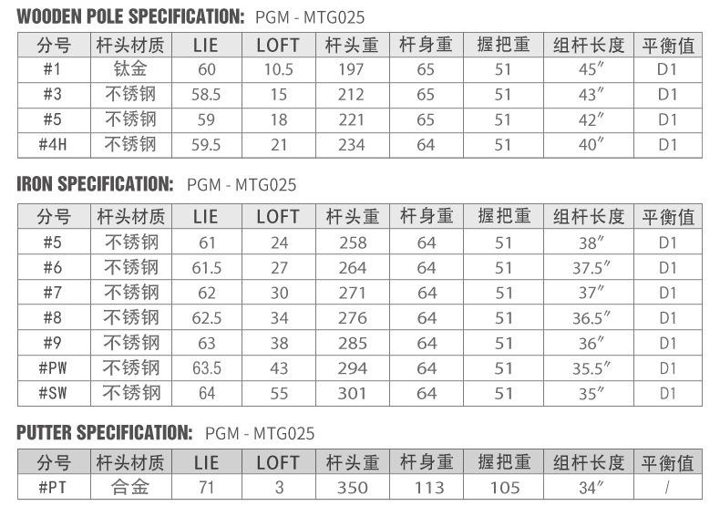 | Material da cabeça | 1 Cabeça de madeira: liga de titânio; #3-5: aço inoxidável; Madeira de ferro: aço inoxidável; Cabeça de ferro: aço inoxidável | |||