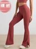Calças de Micro Yoga de Lazer Europeu e Americano Cintura Alta Feminina Levantamento de Quadril Esportes Nu Pernas Largas Micro-calças Split Yoga Bell Pants