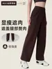Calças Esportivas Casuais de Perna Reta com Fenda de Novo Estilo para Outono e Inverno para Mulheres, Costura Tridimensional, Caimento Solto, Emagrecimento, Calças de Corrida Yoga