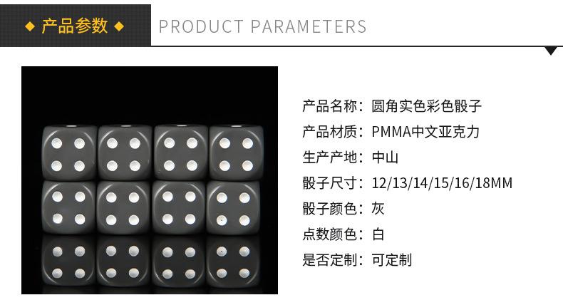 Fornecimento Direto da Fábrica de Cantos Arredondados, Multi-Especificação Cor Sólida Cinza Jogo de Tabuleiro Sub Conjunto de Brinquedos Acessórios Dados Coloridos Crivo de Dados