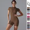 Novo Macacão de Yoga Feminino de Verão Europeu e Americano com Zíper, Manga Curta e Shorts Justos para Dança e Fitness
