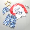 Coreano crianças Swimwear menino de mangas compridas protetor solar de secagem rápida roupa de banho terno de primavera quente bonito do bebê roupa de banho para crianças pequenas e de meia-idade