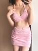 3 cores] 2024 novo biquíni de cor sólida fresca e fresca estilo branco biquíni de três peças