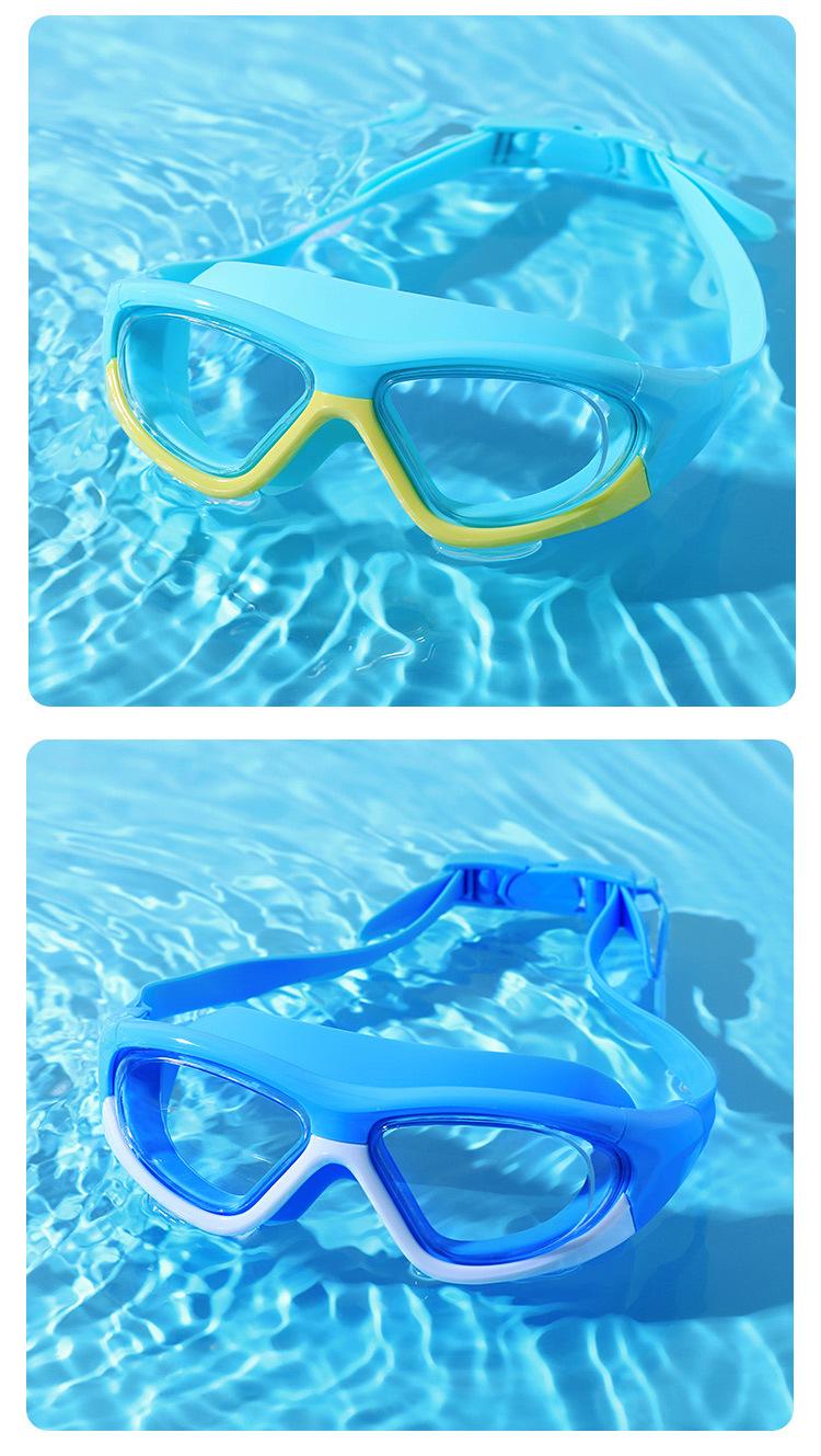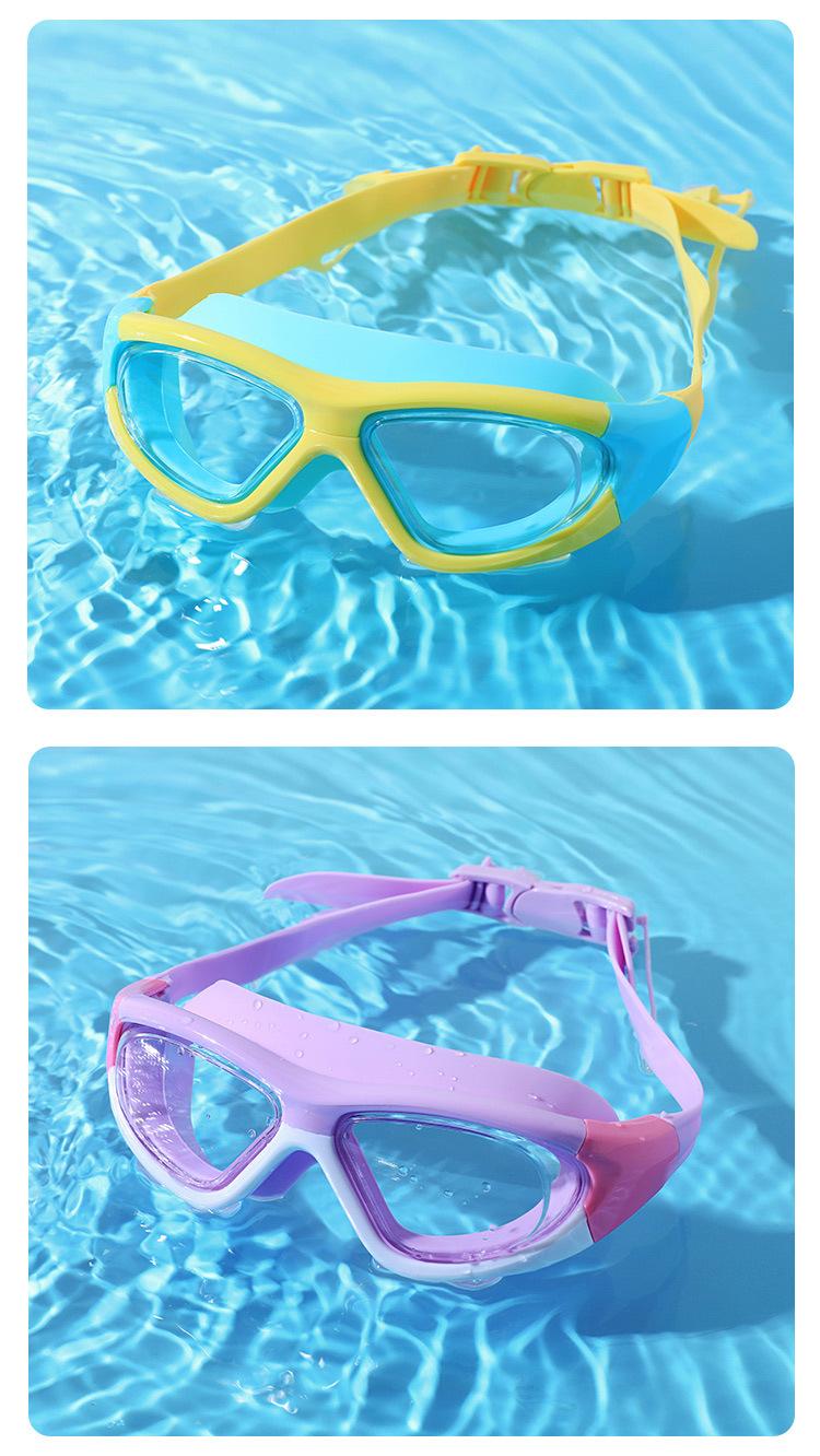 Compre Óculos de natação para crianças Meninos e meninas Silicone Anti-neblina Grande Armação Óculos de natação HD impermeável Óculos de natação confortáveis Óculos de natação portáteis no atacado no Joom.pro