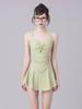 2025 Novo Maiô Feminino Conservador de Uma Peça Cobrindo a Barriga Emagrecendo Estudante Fresco Cor Sólida Estilo Saia Pequeno Seio Maiô de Águas Termais