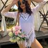 Praia ao ar livre blusa malha oca V-neck gancho de mão solto sexy headband tassel proteção solar blusa biquíni