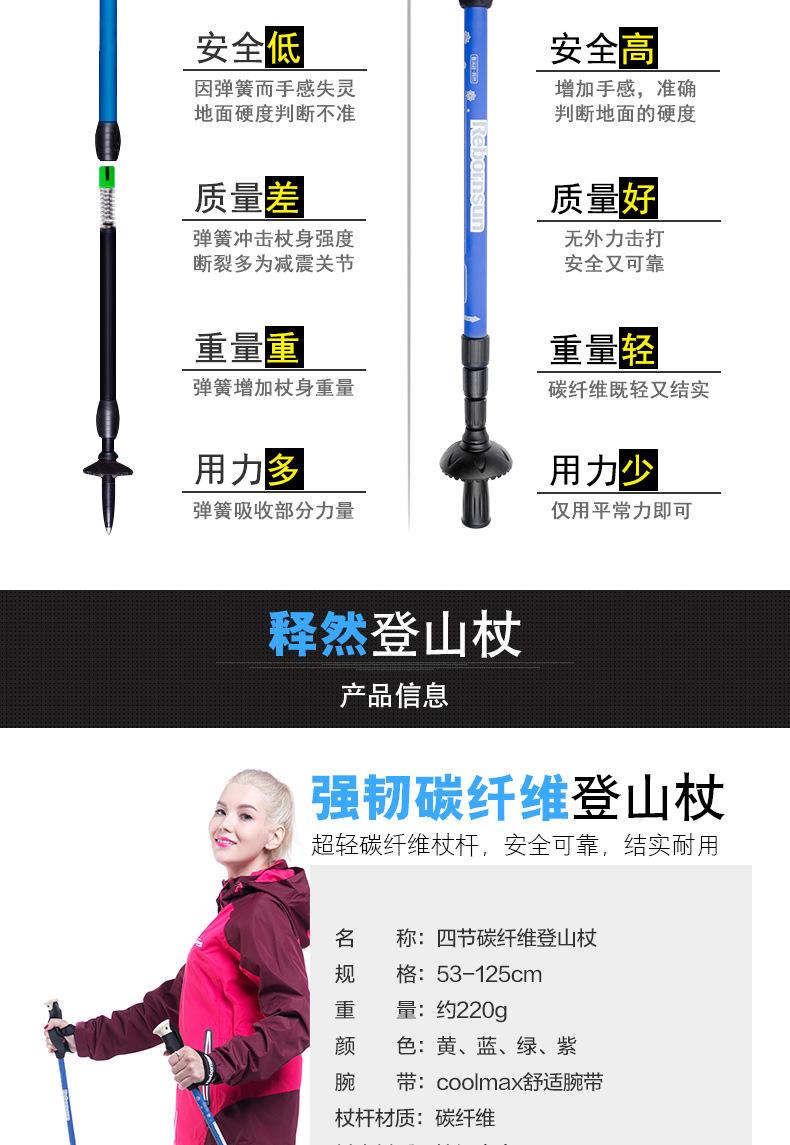 Compre [Novo relevo] genuíno Robinson equipe de montanhismo carbono ultra-leve quatro seção encolher ultra-curto saco portátil bengala no atacado no Joom.pro