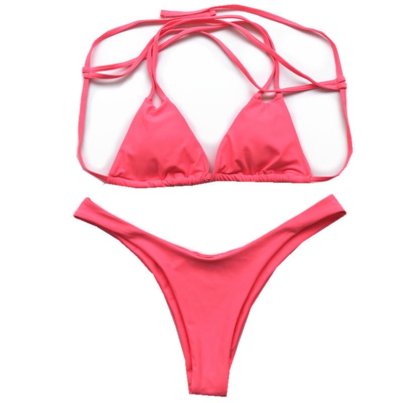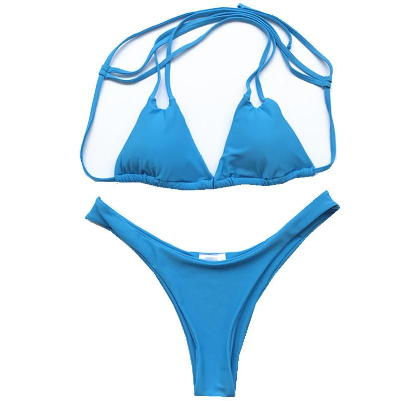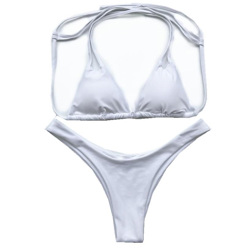 Novo Biquíni Dividido Europeu e Americano Transfronteiriço Feminino Adulto Cor Pura Sem Costas Sexy Justo