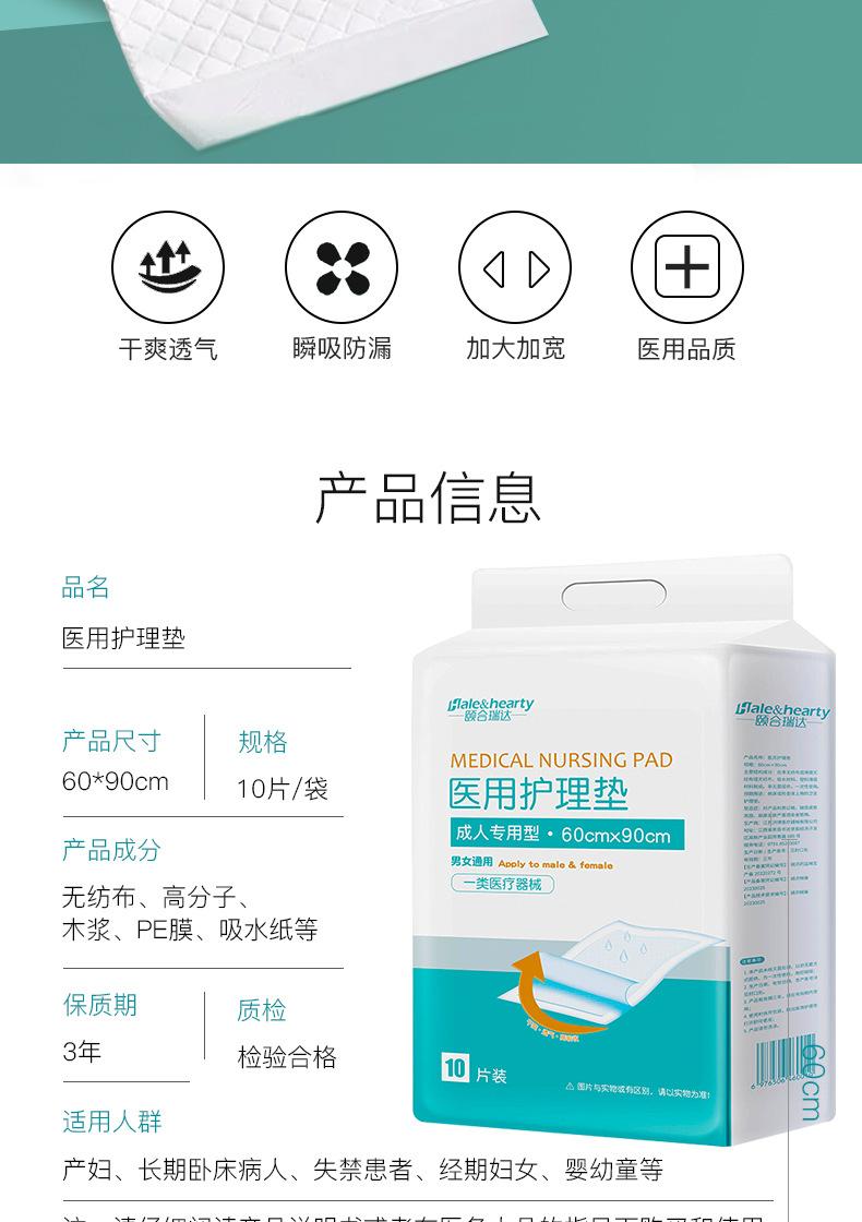 Medical Adult Care Pad 60 * 90 descartável Pad único puerperal Diafragma Pad para único materno idoso 10 peças Pack
