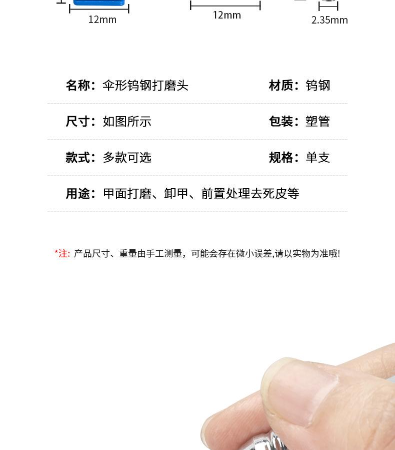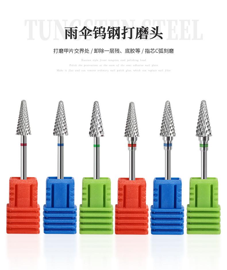 Nova nail art tungstênio aço de remoção de unhas pré-processamento cabeça de moagem para remover a pele morta guarda-chuva cabeça de moagem polimento ferramenta de remoção de unhas