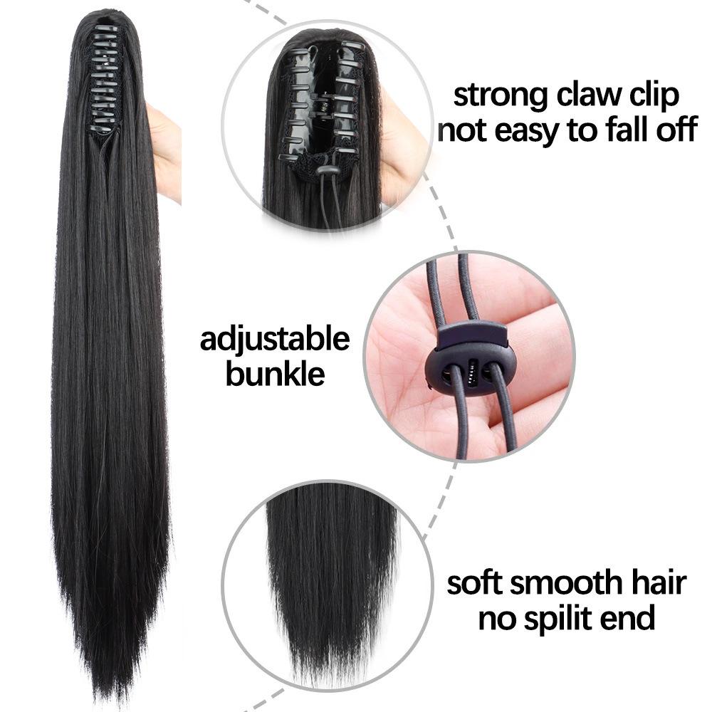 Peruca Rabo de Cavalo com Presilha para Mulheres, Cabelo Longo Liso, Tranças Altas, Rabo de Cavalo Longo com Garra Invisível Realista 613