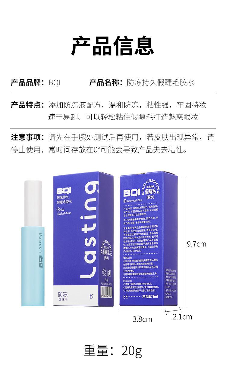A Cola para Cílios Postiços Bqi Antifreeze de Longa Duração é Suave e Não Irritante para Enxertar Cílios e Cílios Adesivos, Cola de Estilização de Longa Duração