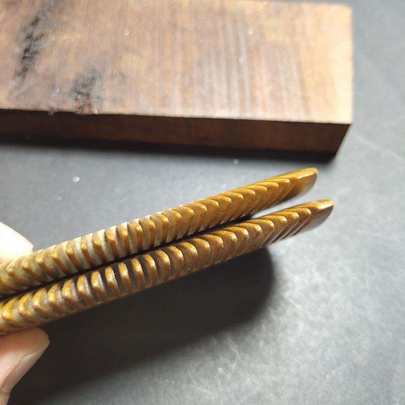 Os pentes de madeira são polidos à mão e a espessura, largura, comprimento, etc. variam, mas estão basicamente dentro de 0,15 mm.