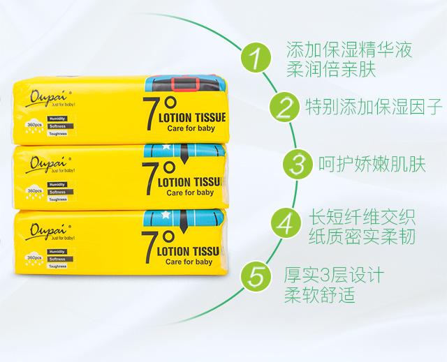 Youpuai tecido hidratante para bebê, 360 folhas, três pacotes de algodão para bebê, tecido macio, creme, tecido macio para nariz