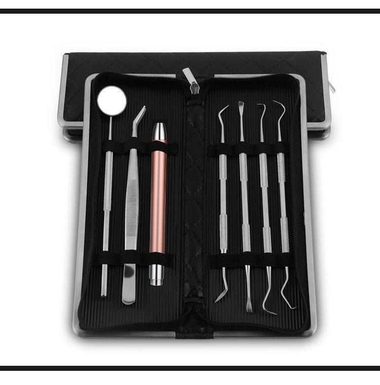 Ferramenta odontológica de aço inoxidável, espelho bucal emissor de luz LED, multifuncional, agulha odontológica, dispositivo de limpeza, fio dental, conjunto de cuidados orais