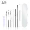 Cureta de ouvido de aço inoxidável conjunto de 8 peças cureta de ouvido 6 peças cureta de ouvido cabeça dupla espiral mola terno ferramenta de limpeza de ouvido
