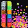 12 tamanho da caixa misturado cor fluorescente Pentágono estrela unhas lantejoulas 3MM4MM gota de cristal cola preenchida jóias