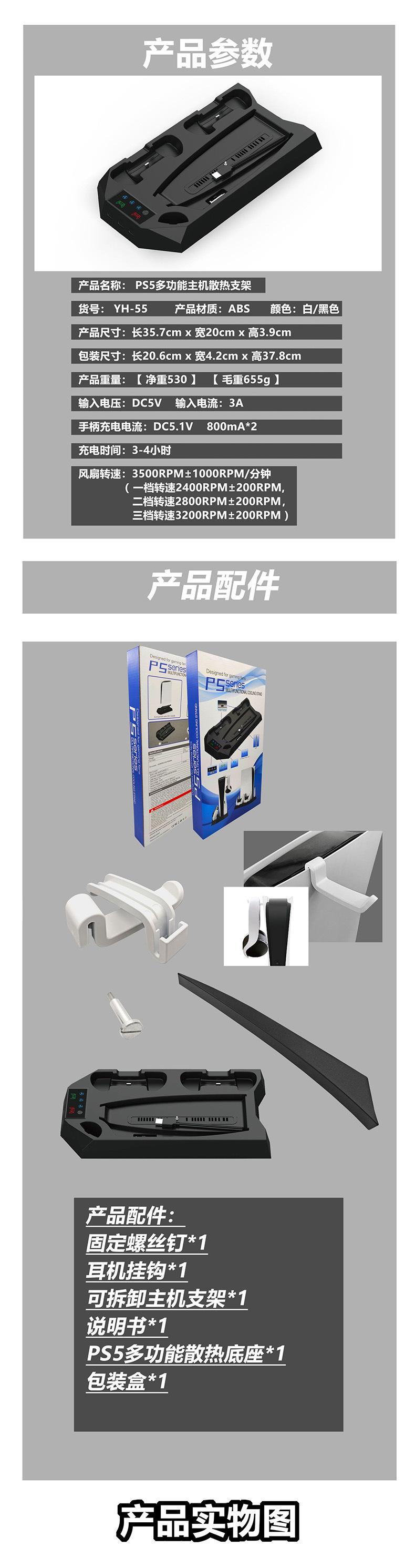 Suporte de resfriamento para console PS5 DE/UHD base de ventilador P5 controlador de jogo dois em um radiador de carregamento de tomada direta
