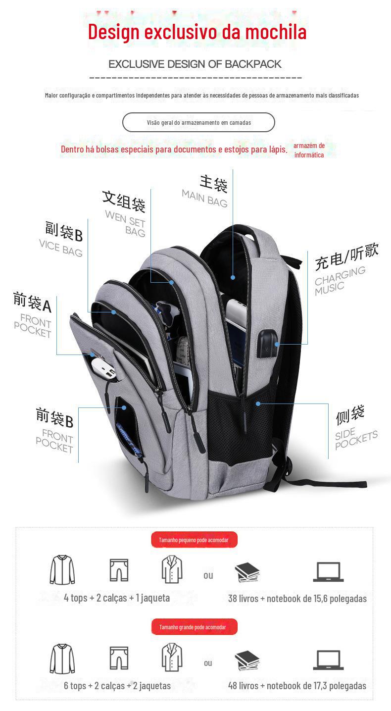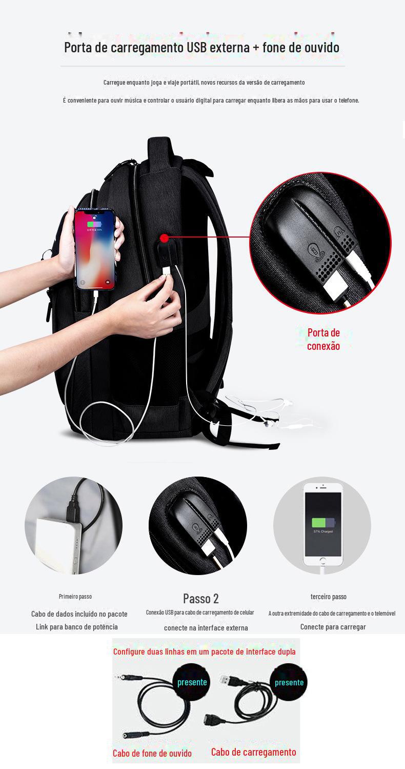 Mochila masculina de grande capacidade mochila recarregável USB saco de computador de negócios casual mochila estudante do ensino médio