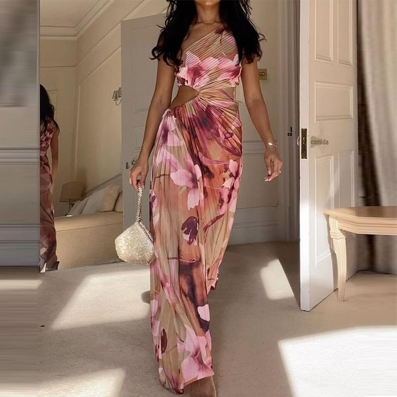 Outono 2023 nova moda europeia e americana cross-border Amazon ombro inclinado design sexy cintura exposta macacão macacão