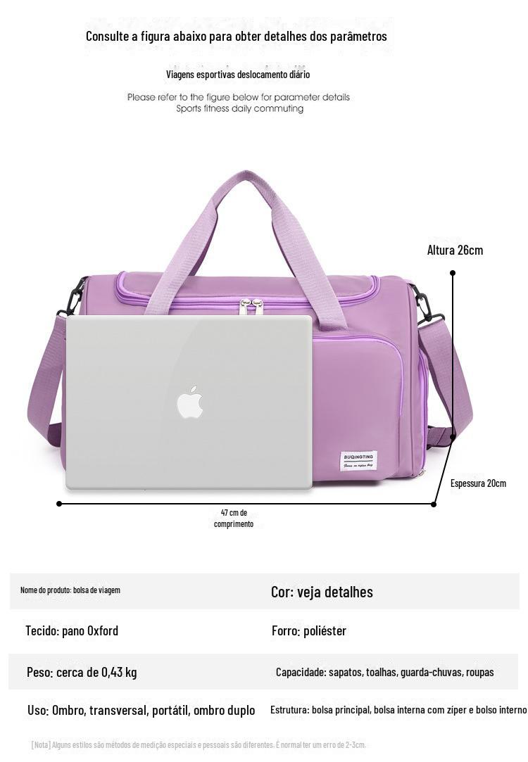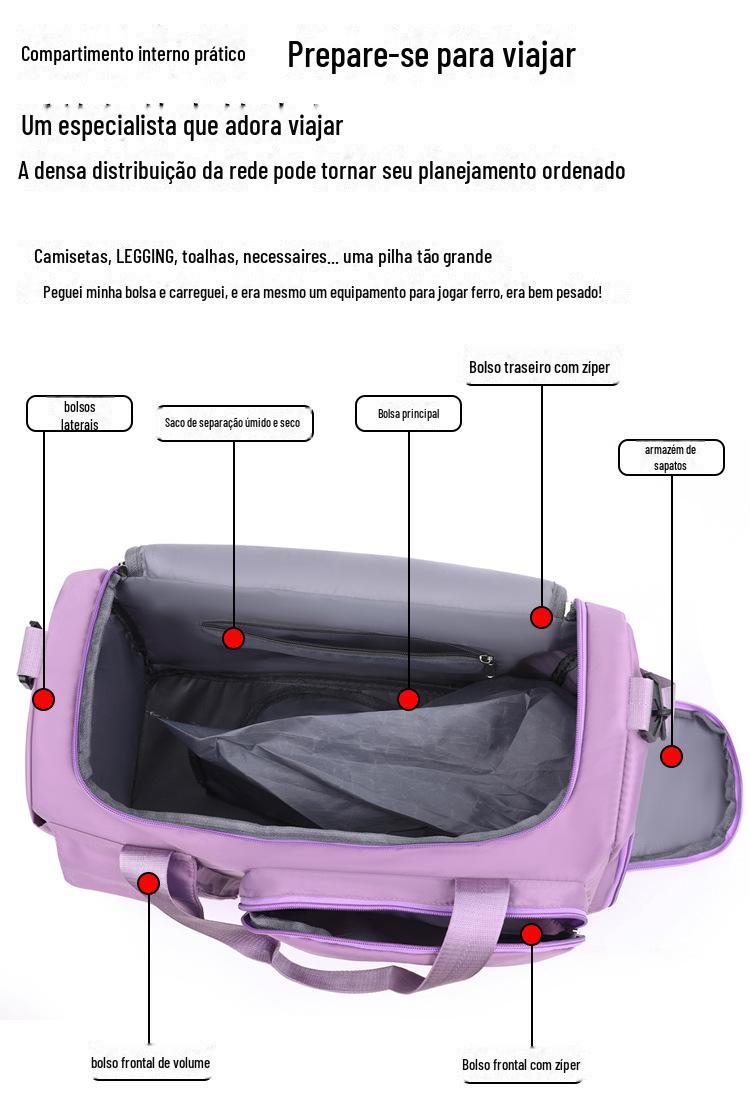Bolsa de viagem feminina portátil de grande capacidade leve bagagem de viagem bolsa de armazenamento de maternidade bolsa de natação feminina outono Fitness Bolsa