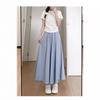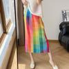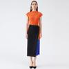 Miyake 2025 Primavera Verão Estilo Casual Laranja Azul Saia Midi Slim Plissada Cintura Alta Saia A-Line Mulher Verão