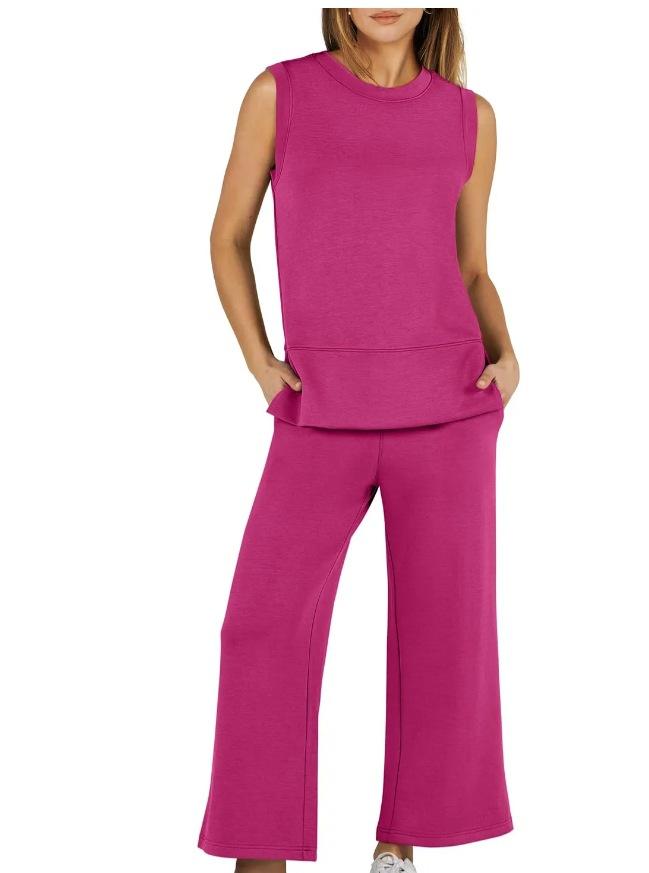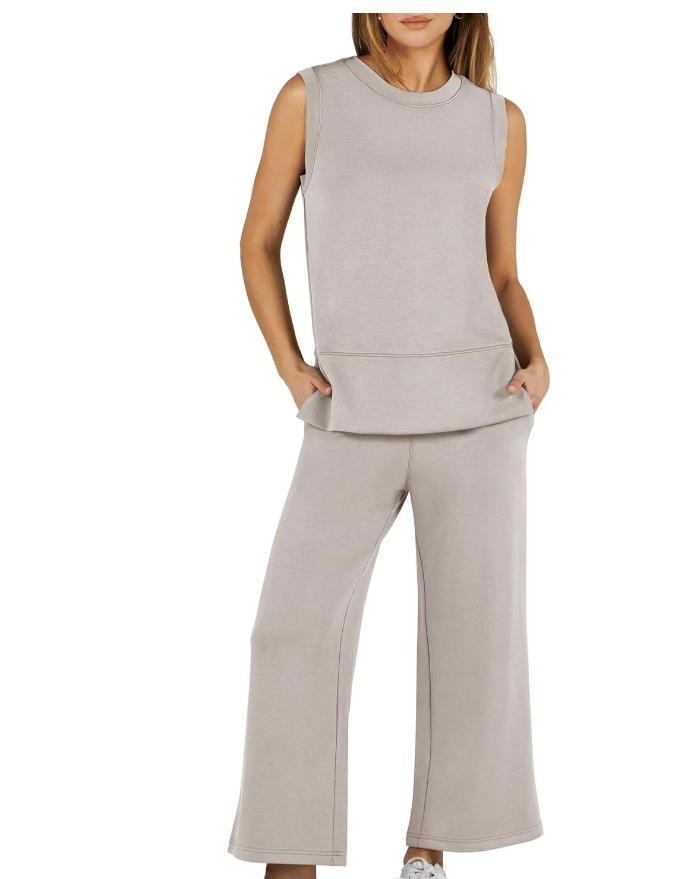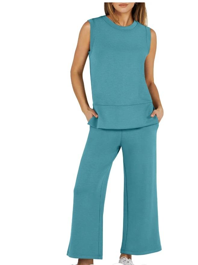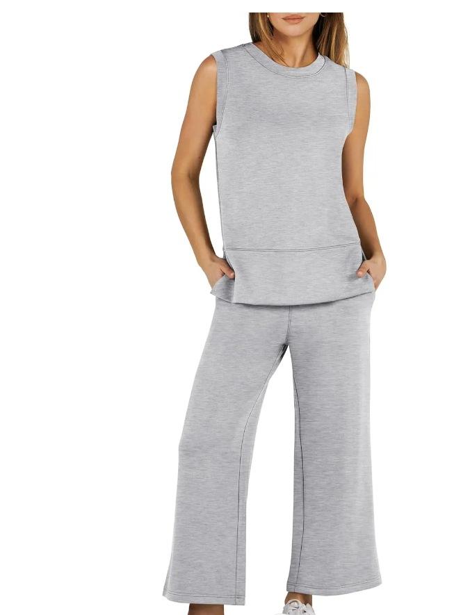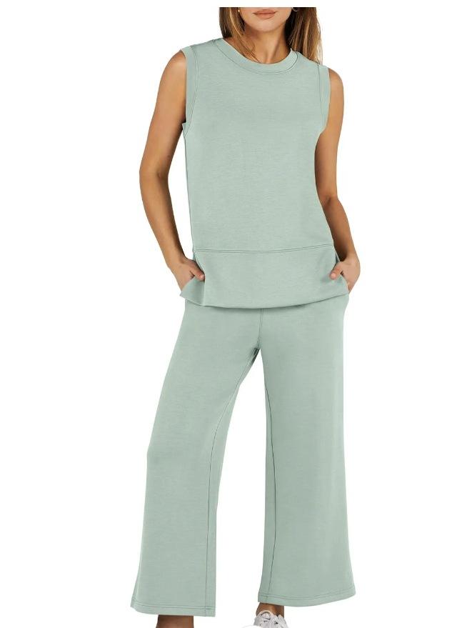 2024 Europeu e Americano Primavera e Verão Novo Mangas Crewneck Calças Colete Feminino
