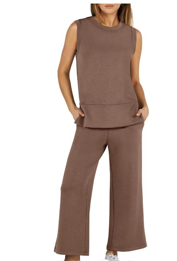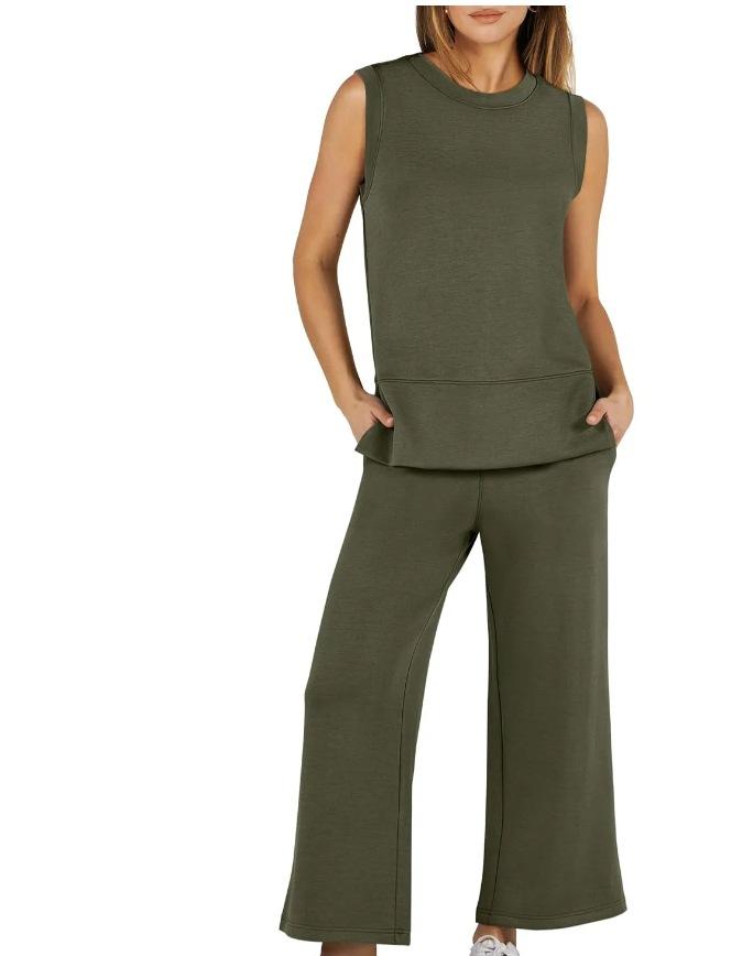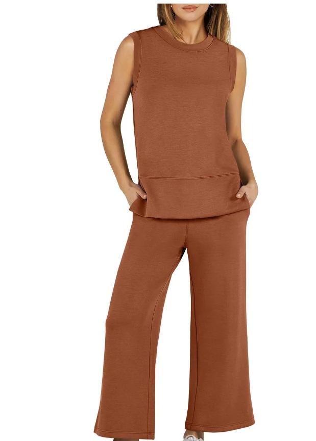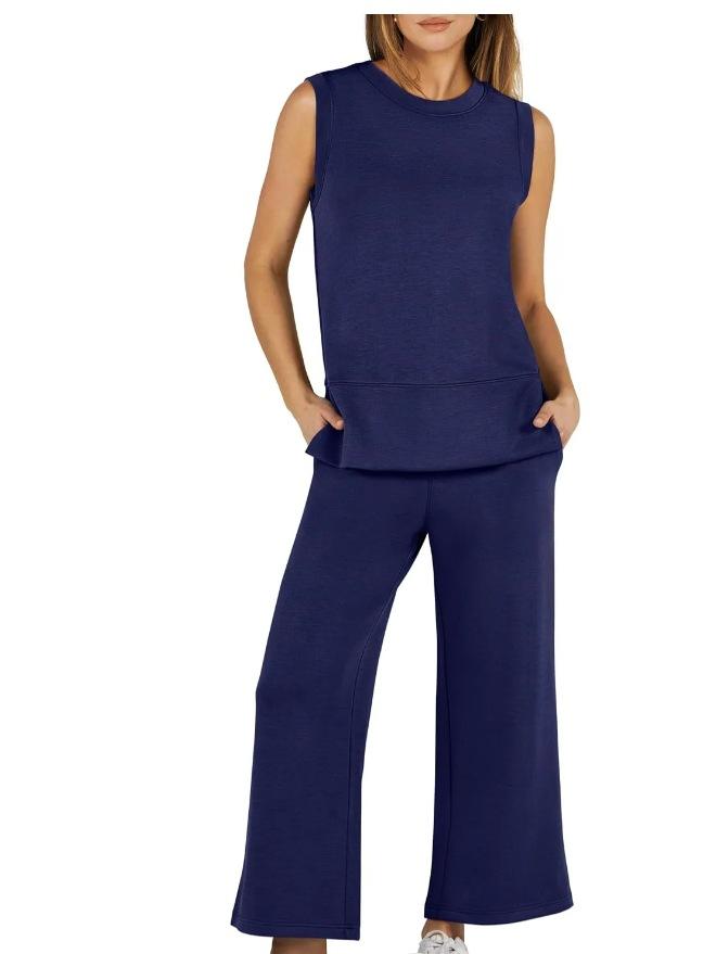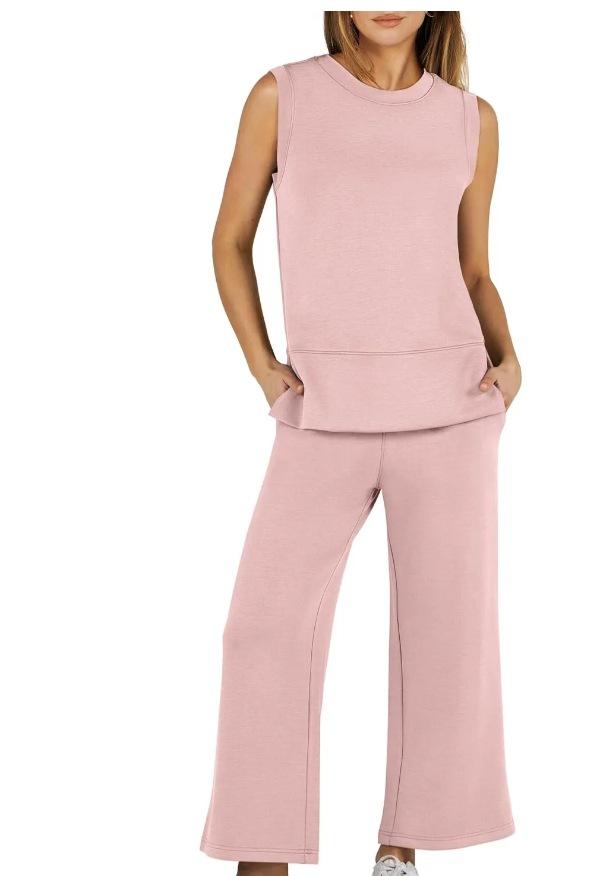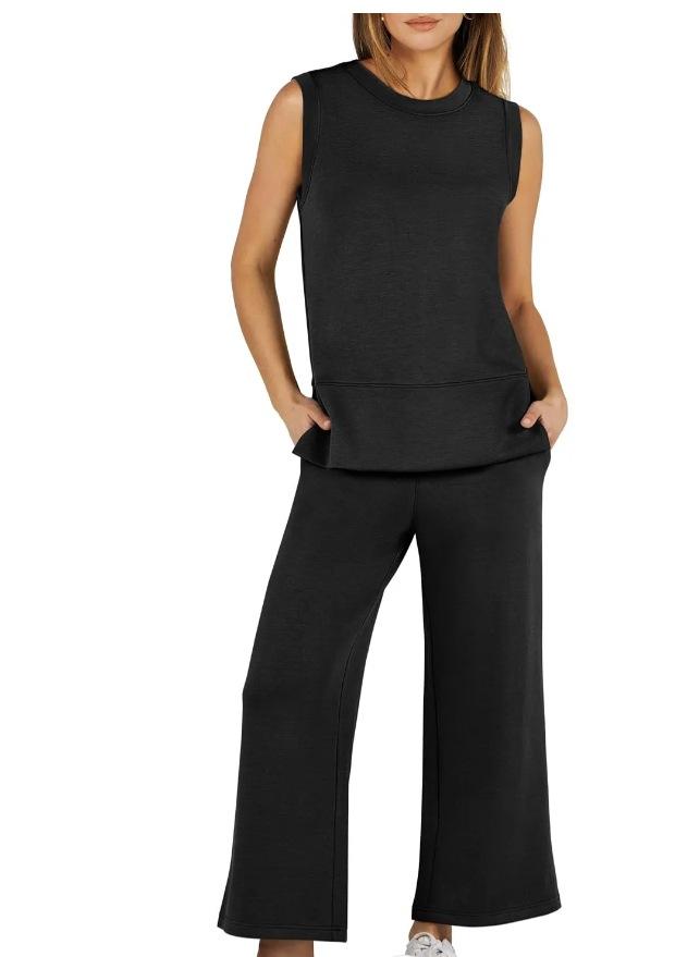 2024 Europeu e Americano Primavera e Verão Novo Mangas Crewneck Calças Colete Feminino