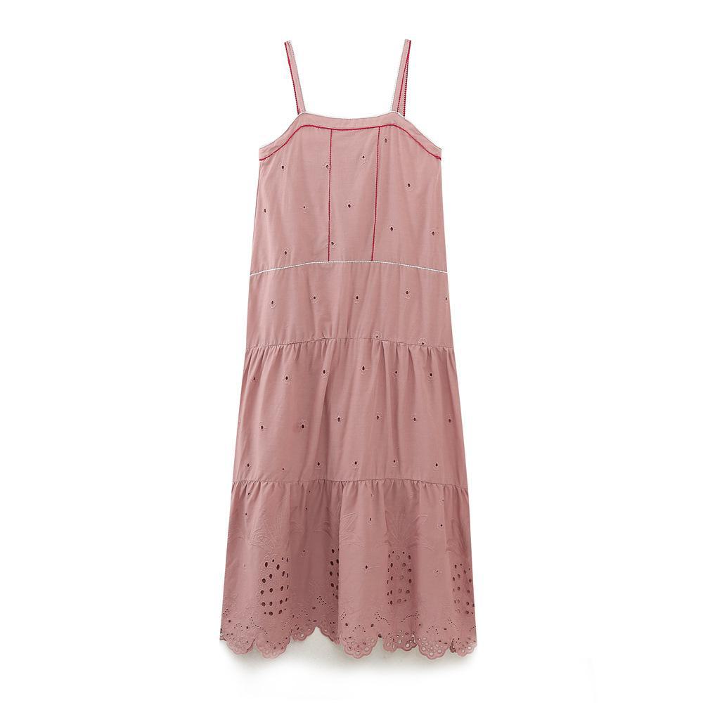 2024 Verão Amazônia Europeia e Americana Mulheres Ocas Respiráveis Bordado Costura Slip Saia Vestido Mulheres E73329