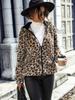 Flash Velvet Europeu e Americano Transfronteiriço Outono e Inverno Mulheres Com Capuz Manga Longa Estampa de Leopardo Comprimento Médio Dupla Face Veludo Solto Jaqueta Casual