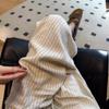 Verão 2024 Novo Semi-Elástico Cintura Alta Fivela Calças Slim Casuais Algodão e Linho Calças de Perna Larga