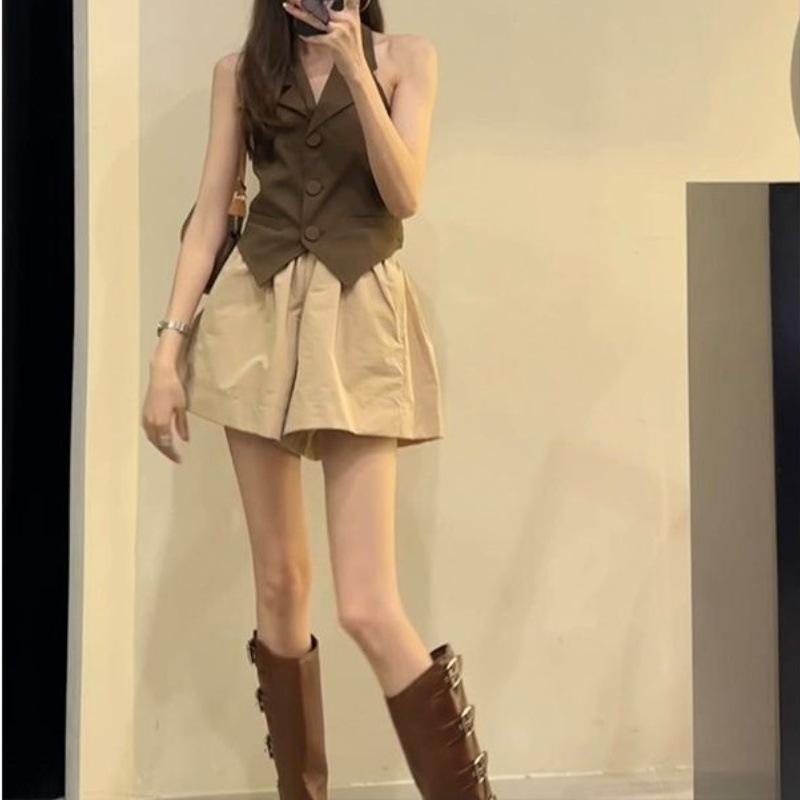 brown Vest, khaki Shorts, brown Vest khaki Shorts