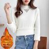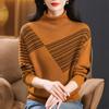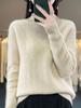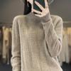 Outono e Inverno novo suéter de lã pura suéter feminino meia gola tartaruga estilo ocidental solto cor sólida lã malha camisa inferior