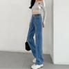 Não-real tiro trespassado design wide-leg reto mop jeans mulheres nova primavera e verão solto drapeado mop calças moda