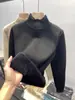 Suéter feminino de gola alta com forro de lã solto, outono e inverno, novo, 2024, Explosions, estilo ocidental, camisa de base de malha, interior engrossado para mulheres
