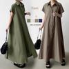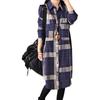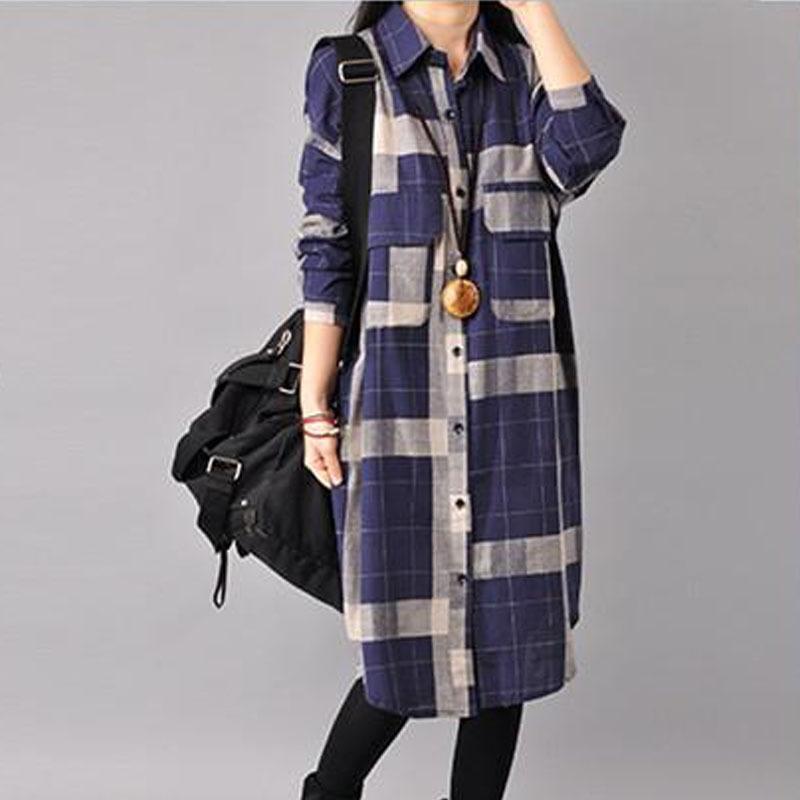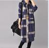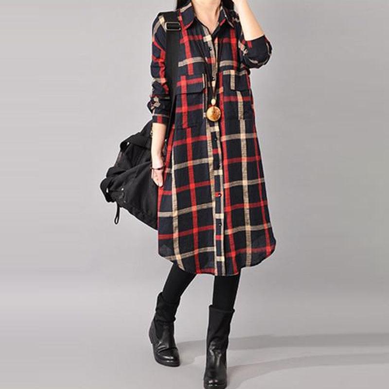 Vestido de primavera estilo coreano algodão linho camisa vestido feminino plus size vestido manga comprida camisa xadrez feminino mid-length saia solta