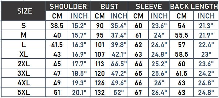 S, M, L, XL, XXL, XXXL, XXXXL, 5XL