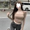 Puro desejo top T-shirt feminina primavera e outono design sentido nicho novo doce quente menina manga comprida short slim V-neck camisa de baixo