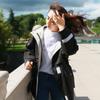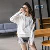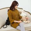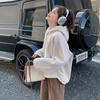 Papaya Milk Primavera e Outono nova moda coreana feminina costura casual loose tendência com capuz manga comprida suéter de lã na moda