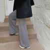 Calças de malha padrão de cânhamo Mulheres Outono e Inverno Nova cintura alta Calça perna reta Loose Drapeado Perna Larga Calças Casuais Mulheres