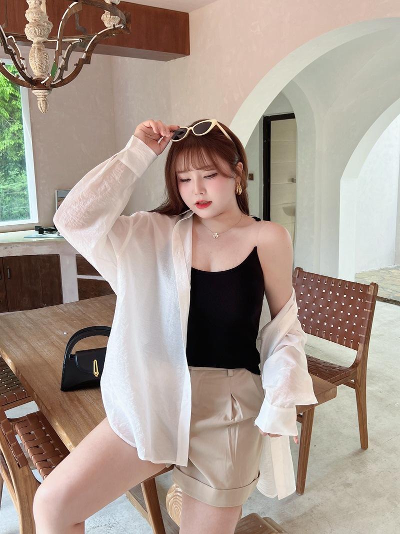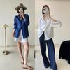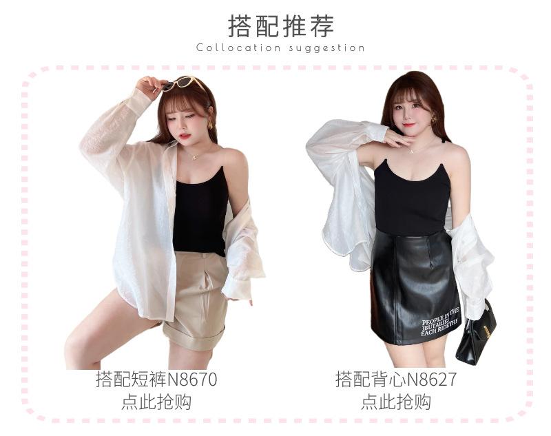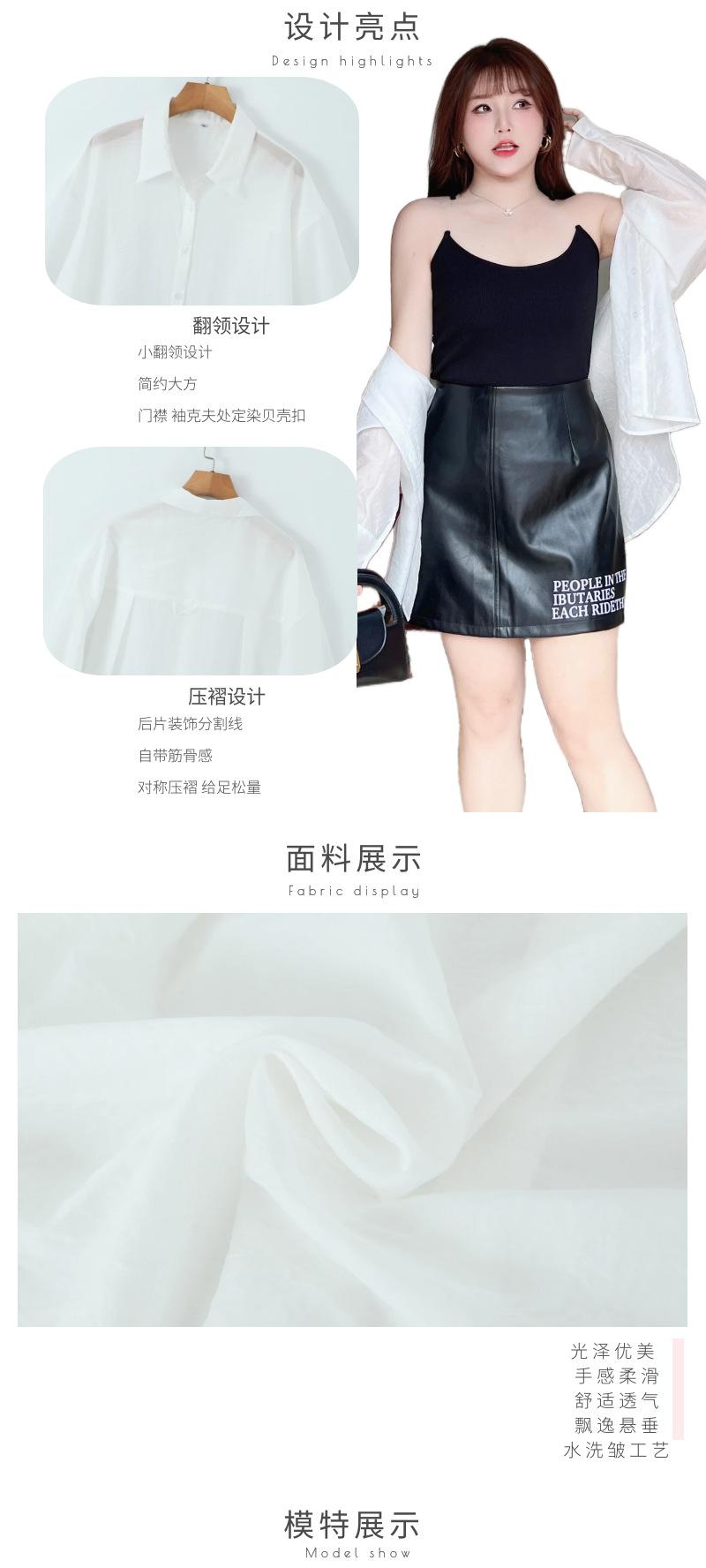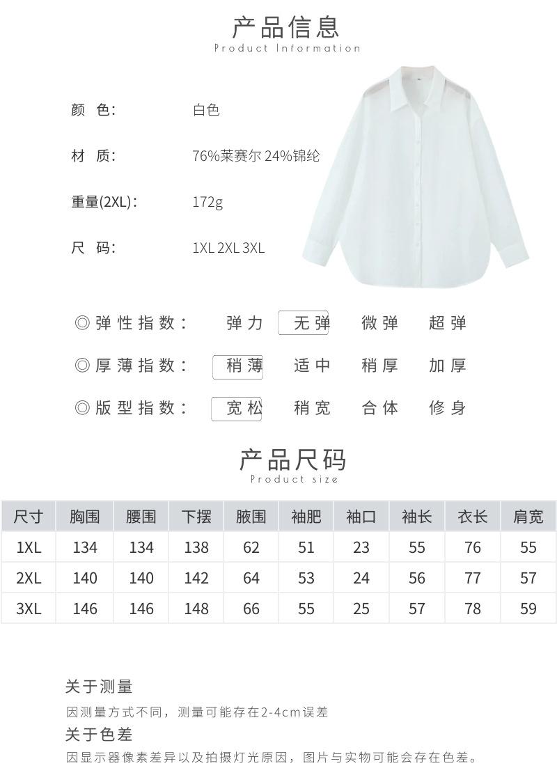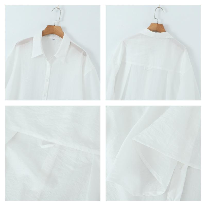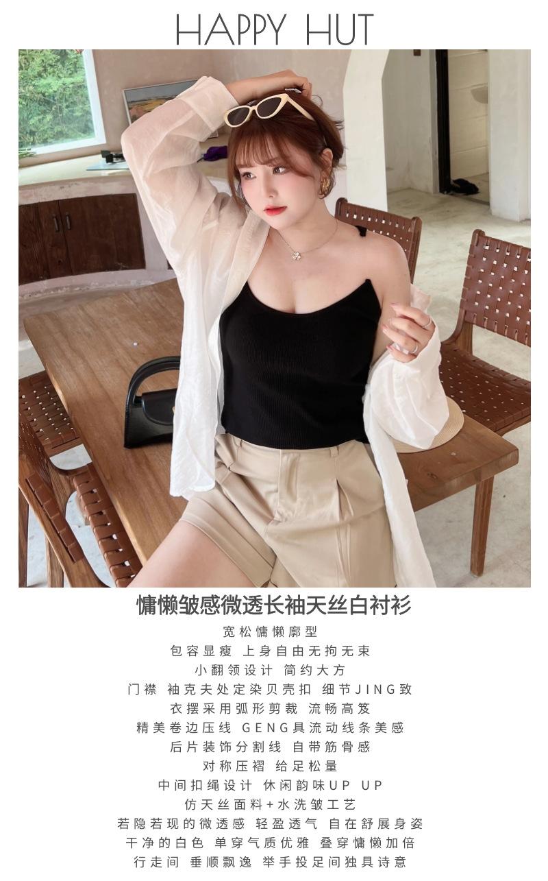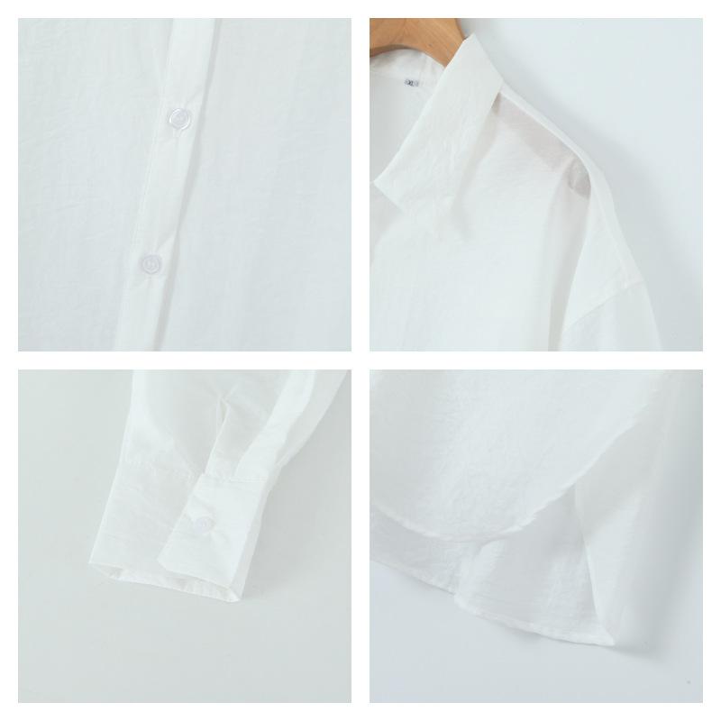Execute sua N8630 sensação de rugas preguiçosas micro através de manga comprida Tencel camisa branca uma geração de tamanho grande protetor solar camisa branca