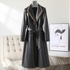 Jaqueta de Comprimento Médio em Couro Genuíno para Mulheres 2025 Primavera & Outono Nova Preto Pele de Cabra Elegante Ajuste Slim Corta-vento Jaqueta Tendência